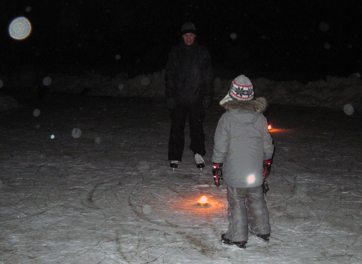 На второй день, после снегопада, хозяин дома почистил бульдозером лед. И у нас появился каток. Жаль, что мы не взяли с собой клюшки с шайбой. Пришлось развлекаться играми в догонялки и колдунчики.