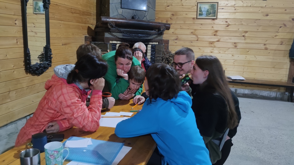 Поскольку на Кавказе темнеет вечером рано, все вечера мы проводили в каминном зале — играли во Что? Где? Когда?
