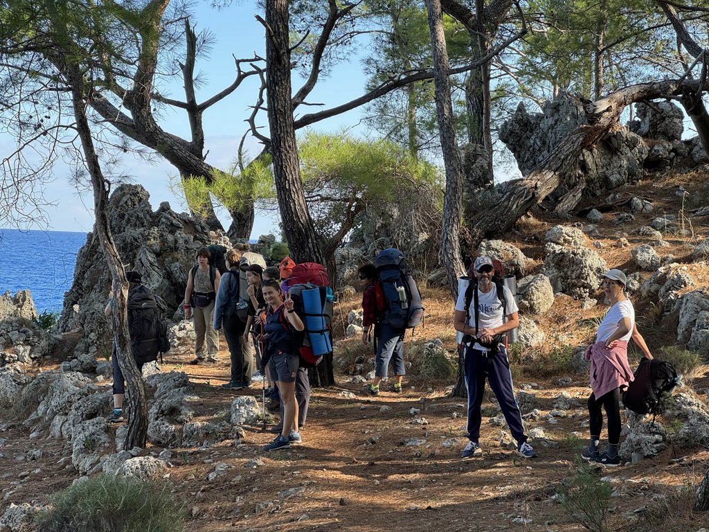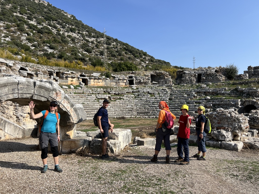 На триместровые школьные каникулы прогулялись по центральной части Ликийской тропы, от Чиралы до Демре. Дорога тут трудная порой, тропа переходит через высокие отроги, чтобы спуститься в новую бухту синего моря. Два таких хребта мы честно преодолели. Третий, с набором высоты 1700 метров и почти полным отсутствием воды по дороге, оставили «на потом». и проехали на местном автобусе, вдоль моря, по серпантинной дороге вдоль очень красивого берега моря.
